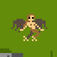 Harpies possess the Heart attack - while it does no damage on its own, being hit by it stuns the player for a few seconds, allowing another mob to attack from range, or even run into the player, unabated. Harpies fly around the screen at moderate speed, flapping their wings as they go.